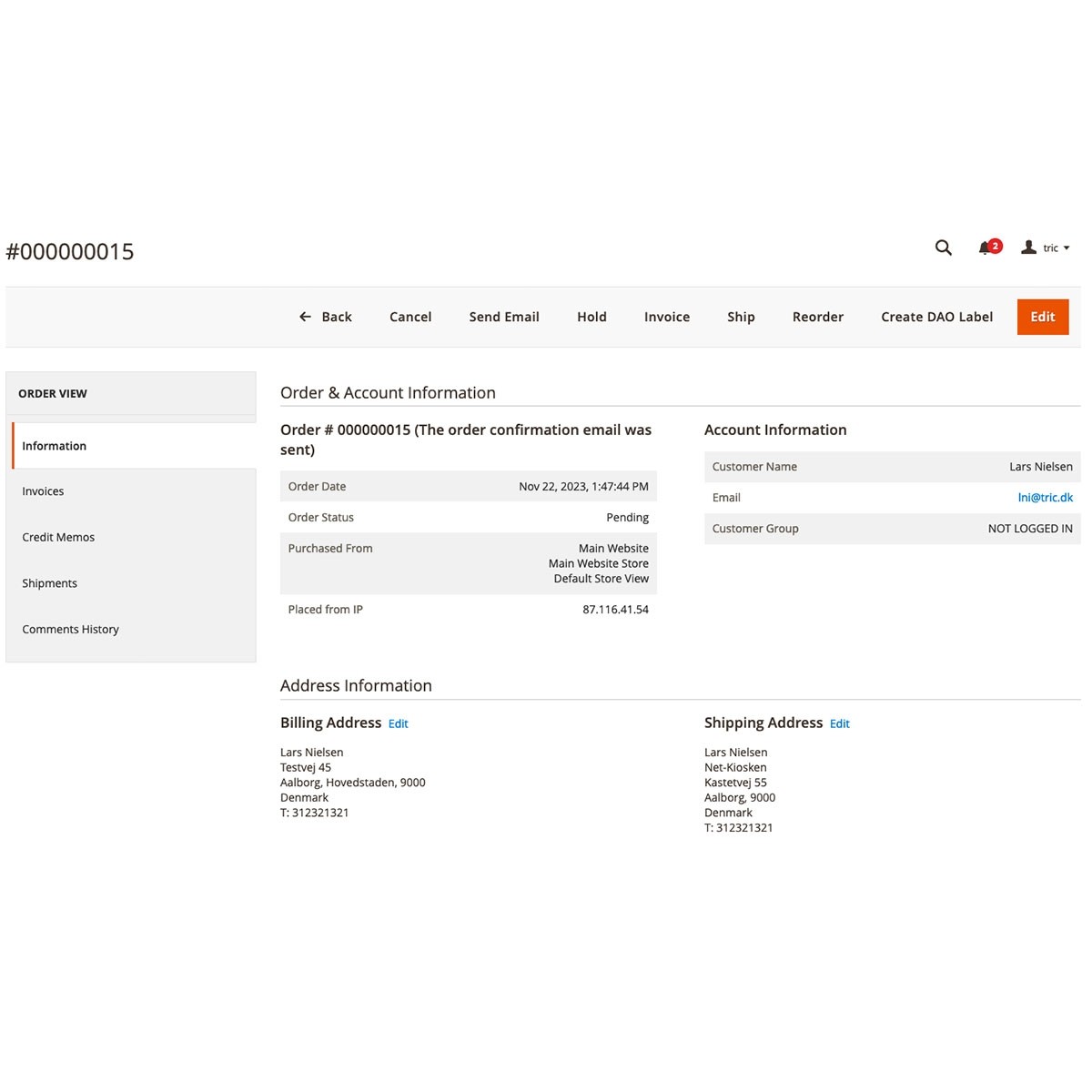 Med Magento 2 modulet til DAO fra TRIC Solutions, kan du nemt og hurtigt lave en integration mellem din Magento 2 webshop og DAO.