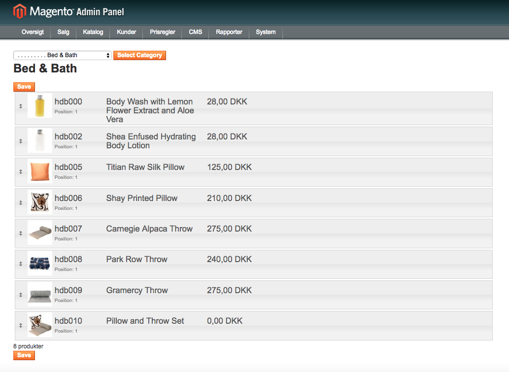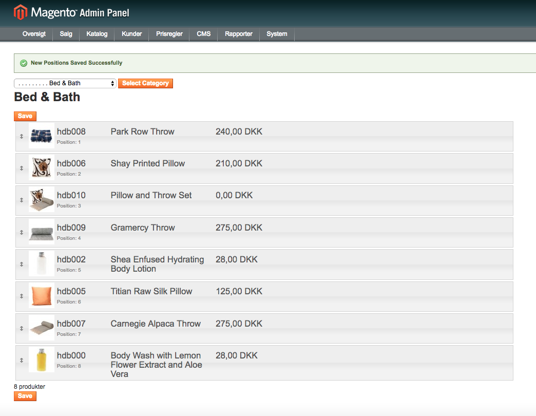 Har du kategorier med mange produkter som du jævnligt justerer positionen på, fx efter sæson og popularitet, så er dette modul en oplagt mulighed for at effektivisere dine arbejdsgange.