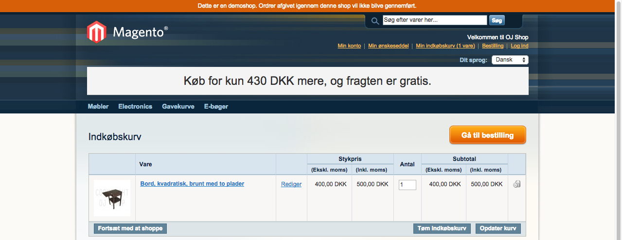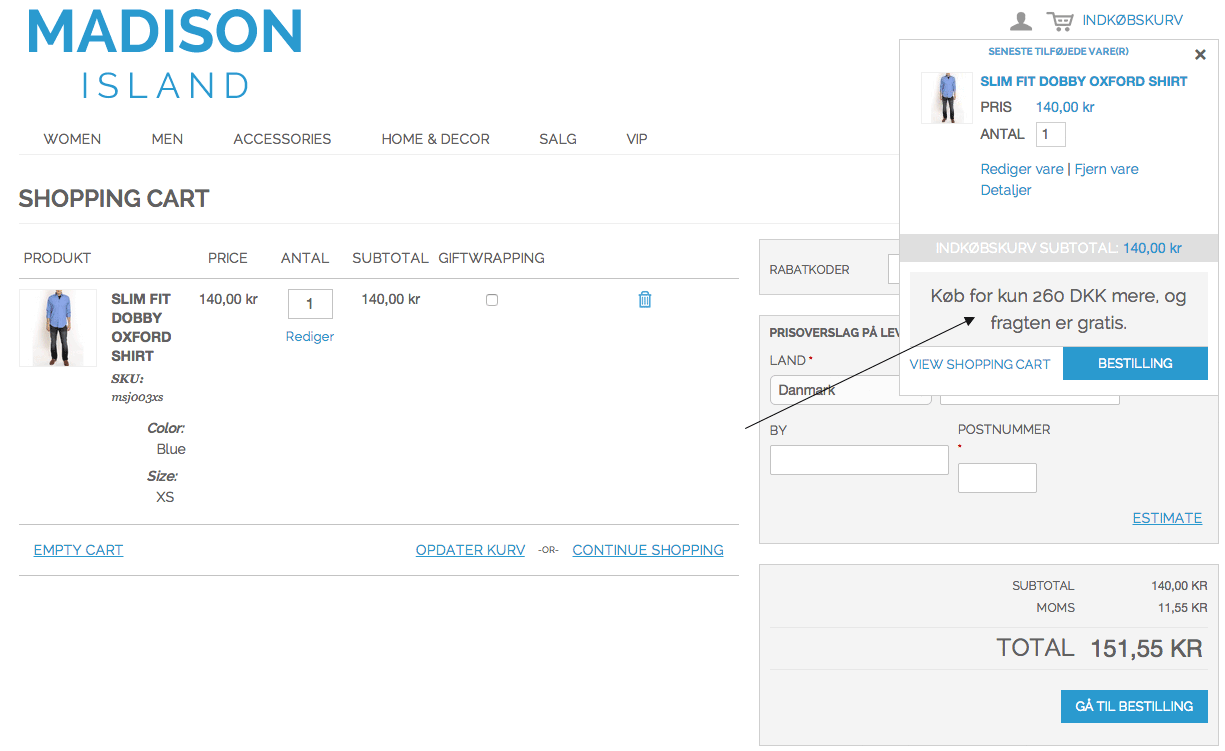 - Mulighed for at style beskeden forskelligt, alt efter om fri fragt er opnået eller ej