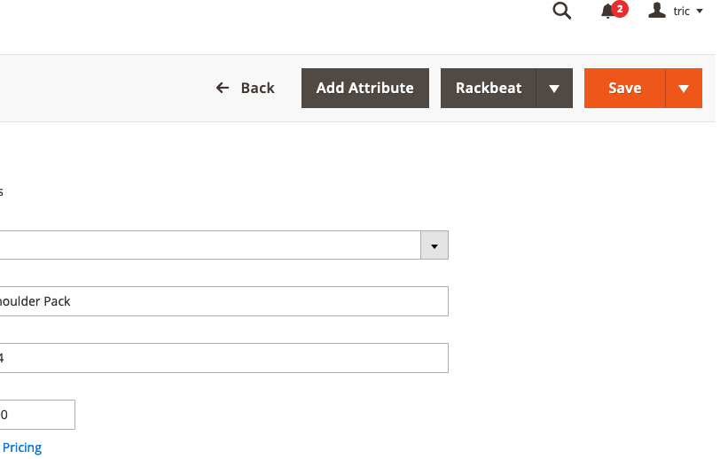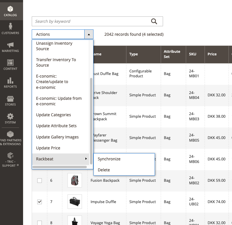 Du kan fra dit produktkatalog nemt oprette eller opdatere produkter fra din Magento 2 webshop til Rackbeat og når du opretter nye produkter vil de automatisk blive oprettet i Rackbeat.