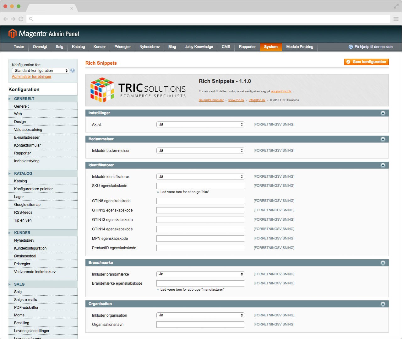Modulet er "Plug 'n Play", og tager sig af alt det kedelige. Du skal blot installere det og konfigurere et par enkelte indstillinger. Herefter vil dine produktdata være tilgængelige for søgemaskinerne.